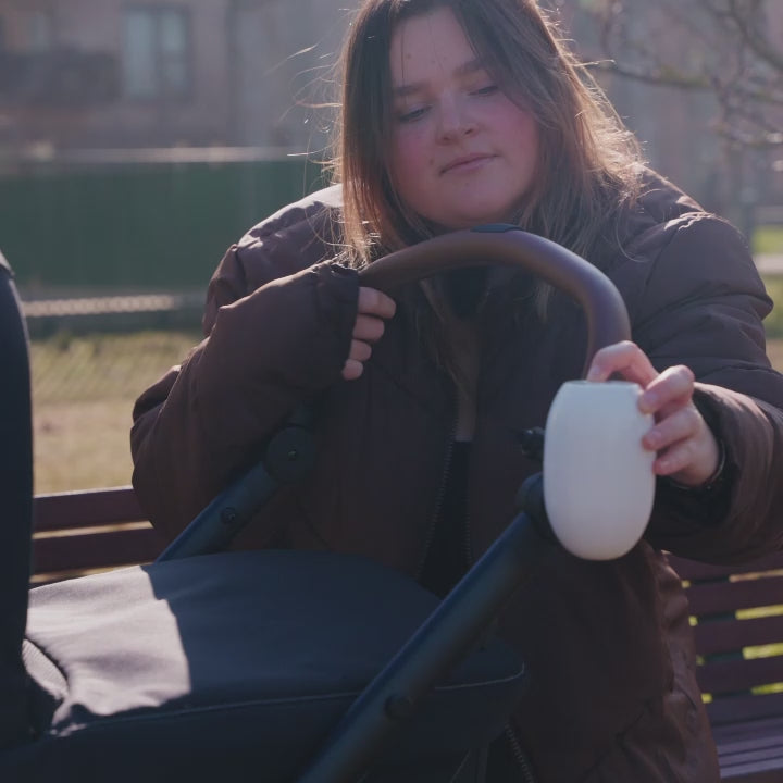 Den monteres nemt på de fleste barnevogne, er næsten lydløs og har justerbar hastighed, så du kan tilpasse vugningen til dit barns behov. Den genopladelige motor kører i op til 8 timer – nok til flere lure og lidt velfortjent ro til dig.