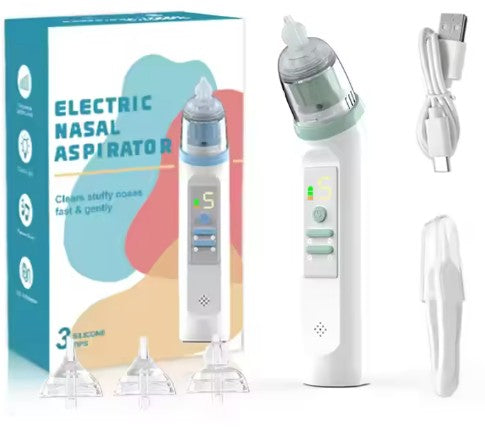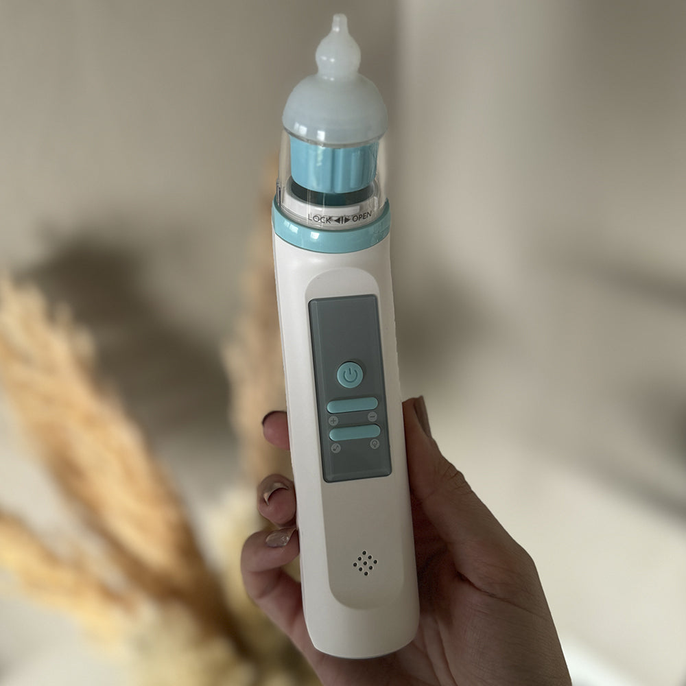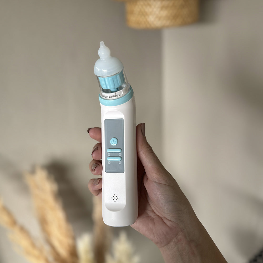 Calmbaby-Snotsuger har 5 sugestyrke, så den kan fjerne snot og slim hurtigt og grundigt fra barnets næse.